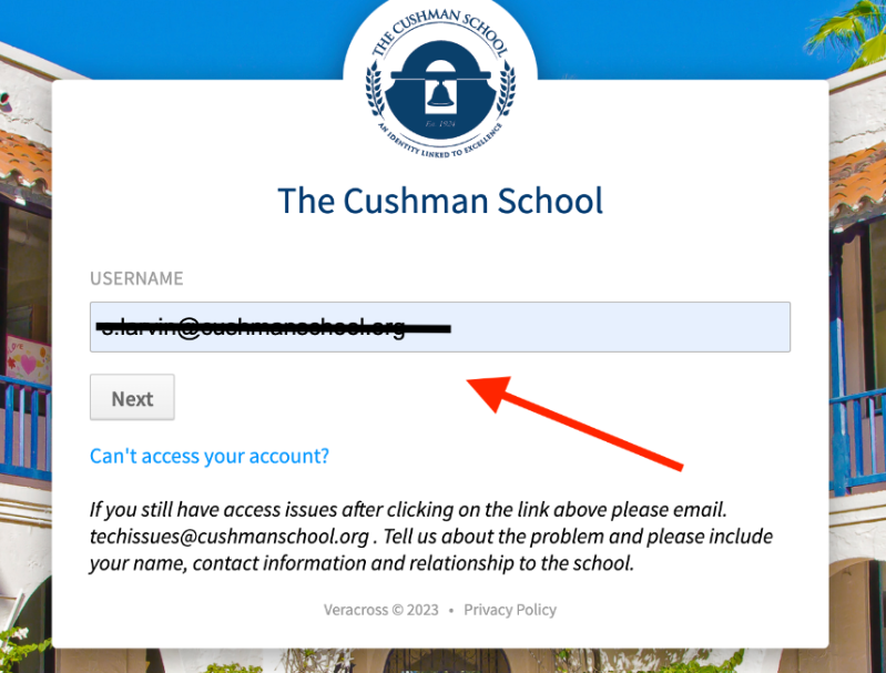 Enter your Cushman email and click continue