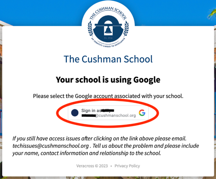 Make sure to select your Cushman Google account.