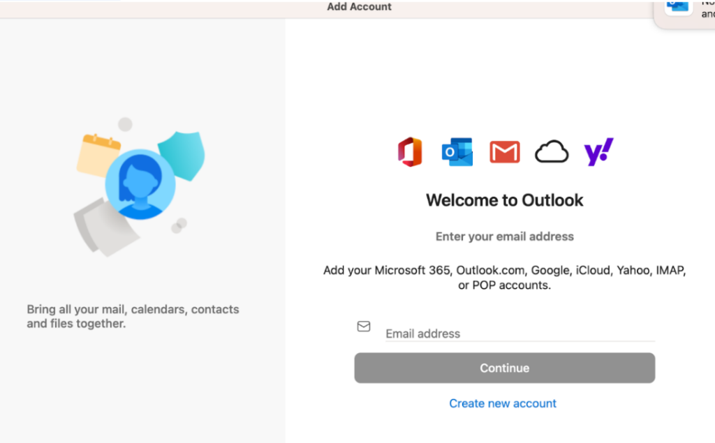 9. SETUP OUTLOOK AND LOGIN TO OFFICE: Locate the Outlook App in launchpad (tile icon) and open it. You will be prompted with a Welcome dialogue box asking to get started.